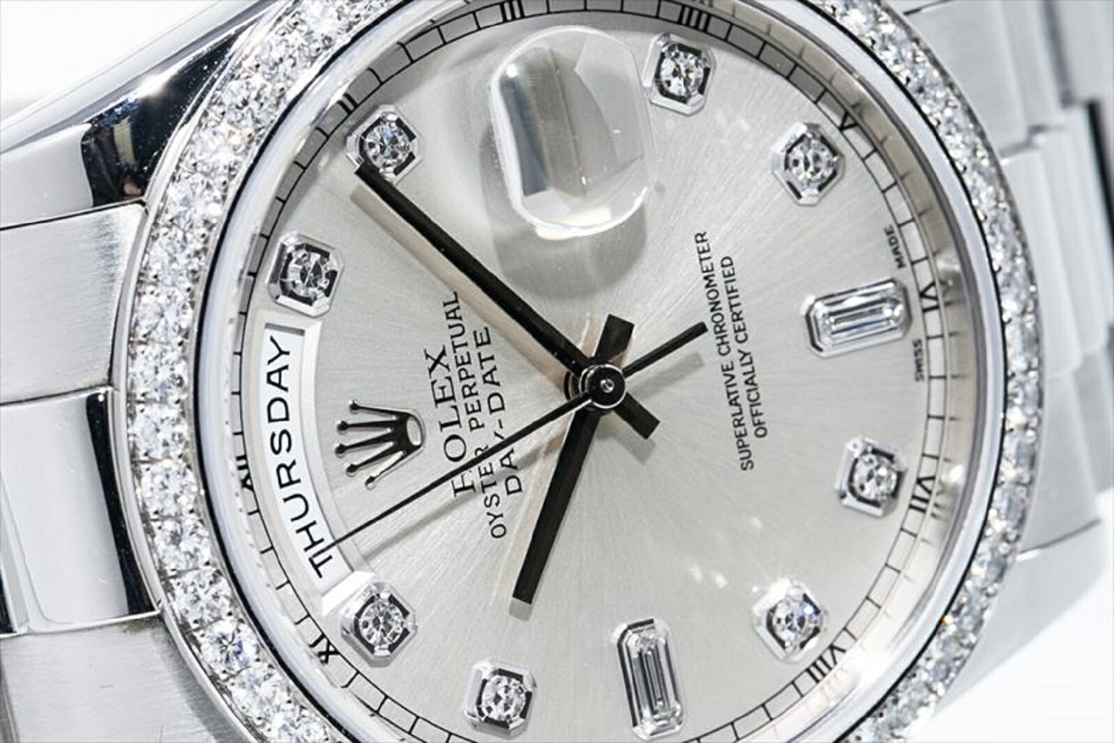 ロレックス ROLEX デイデイト 118346A 2001年 PT プラチナ シルバー メンズ 2001年 P番 10P バケット ベゼルダイヤ 送料無料 【トレジャースポット】【中古】